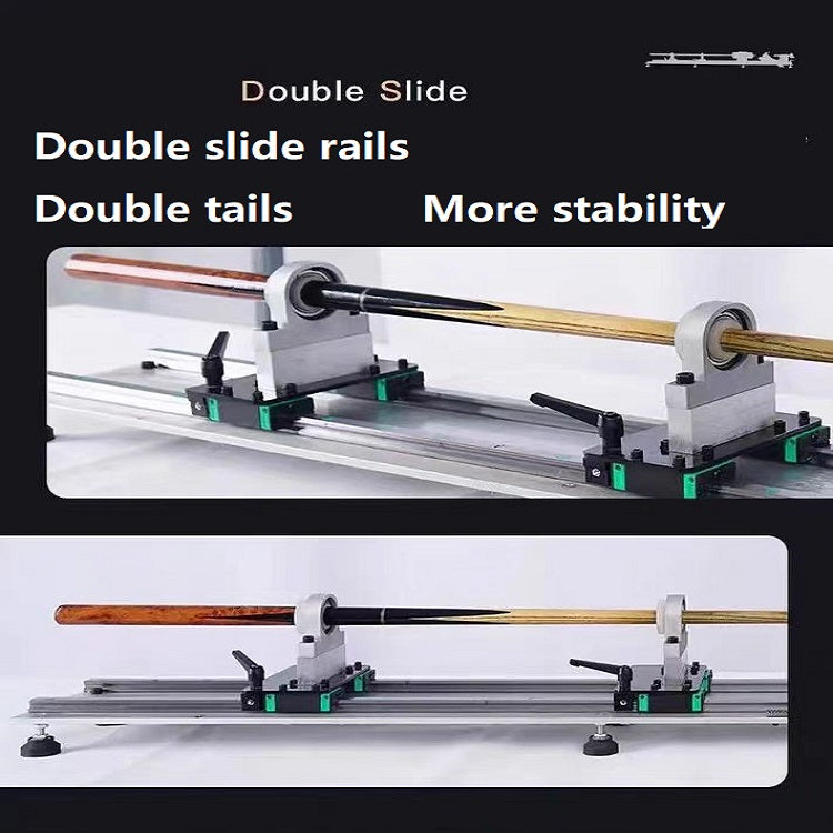 Double-track double-chuck cue repair lathe, double-head with slide rail + double track, stable cutting, double tail support is more stable.