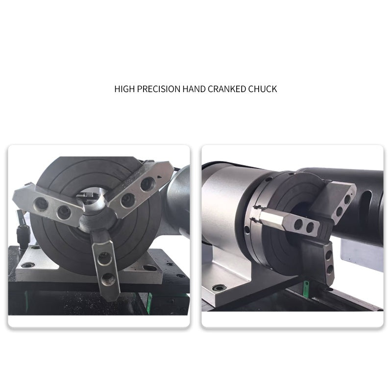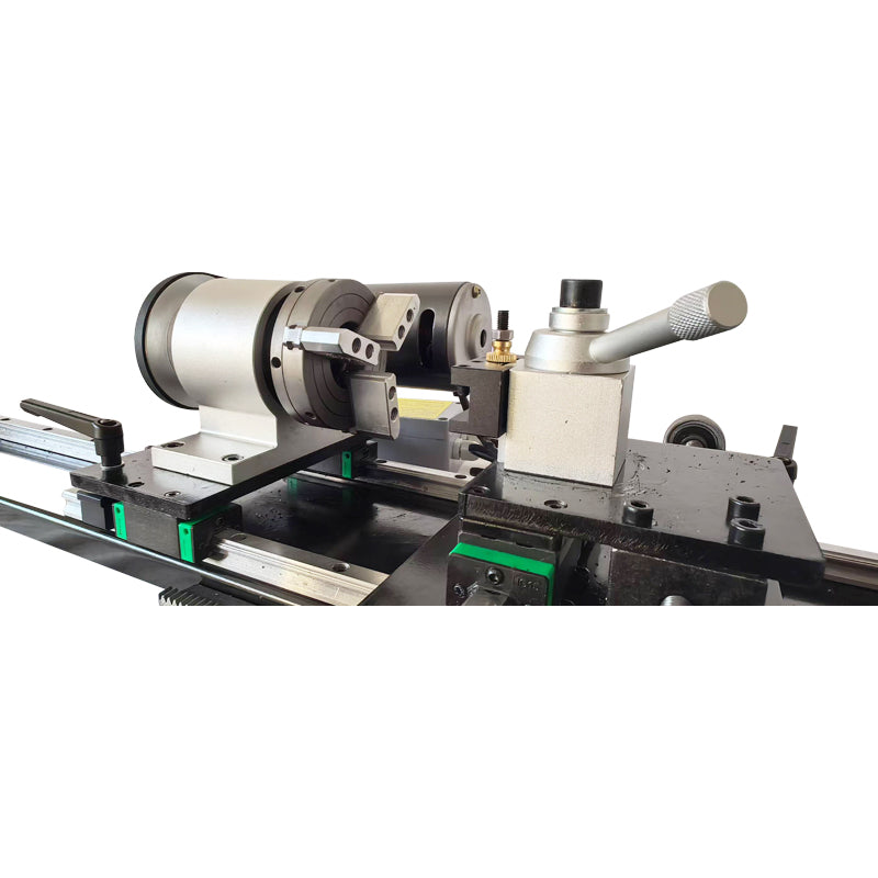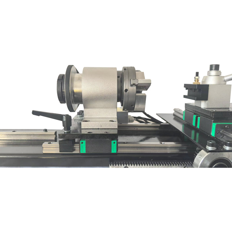 [Spindle]: The spindle through hole of the pool cue lathe is 32mm, and it adopts a high-precision hand-tightened chuck with an accuracy of 0.001-0.002 inches. It adopts a double tail drag bearing seat design with good stability and high precision. The spindle seat, middle drag plate and tail seat can move left and right on the guide rail to a limited extent;